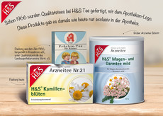 „H&S Tee“ ist die traditionelle Arzneitee-Marke, die von Anfang an bis heute exklusiv in den Apotheken angeboten wird. Sie konzentriert sich vor allem auf die sorgfältige Auswahl erlesener Arzneibuch-Tee-Qualitäten und auf die eigene Herstellung der Arzneitee-Produkte mit selbst gebauten Teepackmaschinen. Die Interessen der Patienten und Apotheker stehen im Unternehmen seit 65 Jahren mit viel Erfahrung im Fokus.
