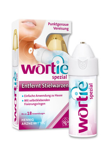 Um Verletzungen zu vermeiden, sollten dafür nur speziell entwickelte Produkte verwendet werden. Problematisch wird es, sobald Betroffene versuchen, das Hautanhängsel abzubinden oder mit einer Schere abzuschneiden. Dies kann nicht nur zu Infektionen führen, sondern auch unschöne Narben hinterlassen. Empfehlenswert sind Präparate aus der Apotheke, die Stielwarzen gezielt und sicher vereisen, z.B. Wortie® spezial. Damit die weiche Stielwarze während der Behandlung nicht wegrutscht, stabilisiert man sie zuvor mit dem beiliegenden selbstklebenden Fixierungsring.