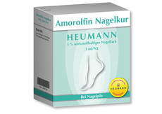 Amorolfin Nagelkur Heumann 5% wirkstoffhaltiger Nagellack. Wirkstoff: Amorolfin-Hydrochlorid. Anwendungsgebiete: Zur Behandlung von Pilzinfektionen bei bis zu 2 Nägeln, welche sowohl die Nageloberfläche als auch die Nagelränder befallen. Zu Risiken und Nebenwirkungen lesen Sie die Packungsbeilage und fragen Sie Ihren Arzt oder Apotheker. Heumann Pharma GmbH & Co. Generica KG, Südwestpark 50, 90449 Nürnberg. Stand: 01/2012