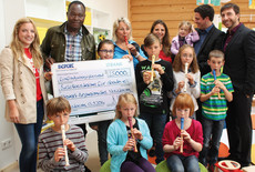 Einweihung des Hevert-Kinderhauses mit Scheckübergabe an „Schulbausteine für Gando e.V.“.