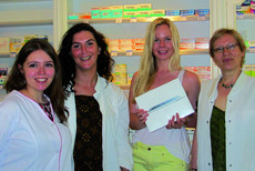 Gute-Laune-Apotheke: Hauptgewinnübergabe in der Lindener Apotheke vl: Julia Knaub, Sigreta Redzic, Sandra Robben, Apothekenleiterin Karen Menges