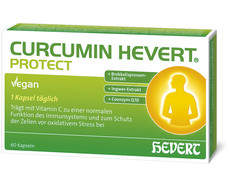 Nussbaum - Kurkuma-, Brokkolisprossen- und Ingwer-Extrakt, Vitamin C und Coenzym Q10 – diese innovative 5-fach Kombination in Curcumin Hevert Protect unterstützt mit Vitamin C das Immunsystem und trägt zum Schutz der Zellen vor oxidativem Stress bei. Das neue Präparat von Hevert-Arzneimittel ist ab Juli 2020 in der Apotheke erhältlich.