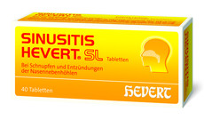Sinusitis Hevert SL befreit schonend Nase und Nebenhöhlen, löst festsitzenden Schleim und ist gut verträglich. Gleichzeitig wird die Infektabwehr unterstützt. Die Kombination aus 11 sorgfältig aufeinander abgestimmten Inhaltsstoffen wirkt auf natürliche Weise und hilft nicht nur bei Schnupfen, sondern auch, wenn bereits eine Entzündung der Nasennebenhöhlen, also eine Sinusitis vorliegt. Die Einnahme ist einfach: die Tabletten zergehen im Mund. Sinusitis Hevert SL ist für die ganze Familie geeignet und kann bereits Säuglingen verabreicht werden. Die Tabletten enthalten keine ätherischen Öle und sind daher besonders magenverträglich. Sinusitis Hevert SL ist rezeptfrei in der Apotheke erhältlich.