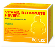 Nussbaum - Seit Anfang Juli 2019 ergänzt die Packungsgröße 120 Kapseln die bisherige Packung mit 60 Kapseln von Vitamin B Complete Hevert. Das vegane Komplettpaket von Hevert-Arzneimittel enthält alle acht B-Vitamine plus Cholin, Inositol und PABA und ist laktose-, gluten- und zuckerfrei.