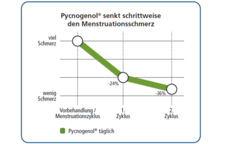 Zur Linderung der prämenstruellen Beschwerden werden als Mittel der ersten Wahl nicht-steroidale Entzündungshemmer (NSAR) eingesetzt. Heute bietet die Naturheilkunde mit dem starken Entzündungshemmer Pycnogenol®, dem Extrakt aus der französischen Meereskiefernrinde, eine nebenwirkungsfreie Alternative. In Studien konnte gezeigt werden, dass bereits eine einmalige Pycnogenol®-Einnahme die COX-Enzyme, die die Synthese entzündungsfördernder Prostaglandine einleiten, signifikant um 23 Prozent hemmt.