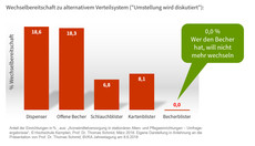 Schwarzach/Main - Auch wenn wir es hier mit einer Momentaufnahme zu tun haben – wir dürfen stolz sein auf dieses Ergebnis: rund 20% der befragten Heime in der Studie (s.u.) wollten die Verblisterung einführen bzw. auf ein alternatives System umsteigen; vor allem die aktuellen Verwender offener Systeme zeigten Wechselbereitschaft. Aber kein einziges(!) der Heime, welche bereits den Becherblister benutzten, wollte auf ein anderes System umsteigen (siehe Abbildung)!