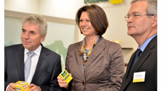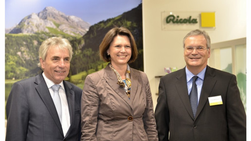 Die ISM 2012 in Köln verlief für Ricola außerordentlich erfolgreich. Vom 29. Januar bis 1. Februar kamen zahlreiche Besucher aus dem In- und Ausland zum Ricola Messestand, wo die internationalen Produktinnovationen für 2012 vorgestellt wurden. Für besondere Freude beim Ricola Messeteam sorgten der Besuch von Ilse Aigner, Bundesministerin für Ernährung, Landwirtschaft und Verbraucherschutz, und Jürgen Roters, Oberbürgermeister der Stadt Köln. Gleich am ersten Messetag ließen es sich die beiden Spitzenpolitiker nicht nehmen, dem Ricola Messestand einen persönlichen Besuch abzustatten, wo sie von Felix Richterich, Präsident des Verwaltungsrates und CEO von Ricola, empfangen wurden. Die Bundesministerin informierte sich dabei ausführlich über die Produktneuheiten – insbesondere der aktuellen Produktidee von Ricola, eine Sorte Kräuter Original mit Stevia – und betonte die Bedeutung, die Ricola als Marktführer im deutschen Hustenbonbonsegment zukomme.„Der Besuch von Frau Bundesministerin Aigner und Herrn Oberbürgermeister Roters zeigt die hohe Wertschätzung für Ricola Produkte in Deutschland“, freut sich Felix Richterich. „Mit qualitativ hochwertigen Produktinnovationen unserer Schweizer Kräuterspezialitäten wollen wir den hohen Erwartungen auch in Zukunft gerecht werden.“