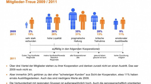Im Vergleich zur Studie 2009 hat die Loyalität zur eigenen Kooperation deutlich zugenommen (+17 Prozentpunkte) und die Zahl der Kritiker ist auf 24% gesunken (2009 noch 37%). Mitglieder wünschen sich noch mehr Chancen zur Veredelung ihrer Individualität.
