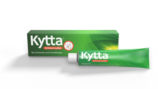 Bezeichnung: Kytta® Schmerzsalbe. Wirkstoff: Beinwellwurzel-Fluidextrakt. Zusammensetzung: 100 g Creme enthalten 35,0 g Beinwellwurzel, Fluidextrakt (1:2) mit Ethanol 60 Vol.-%. SonstigeBestandteile: 2-Phenoxyethanol-[butyl, ethyl, methyl, (2-methylpropyl), propyl] (4-hydroxybenzoat), Natriumhydroxid, PPG-1-PEG-9 Lauryl Glycol Ether, Cetylstearylalkohol, Glycerolmonostearat, Natriumdodecylsulfat, Erdnussöl, gereinigtes Wasser, Lavendelöl (enthält Limonen, Linalool), Fichtennadelöl (enthält Limonen), weitere Duftstoffe als Bestandteile des Parfümöl Spezial PH (enthält u. a. Benzylalkohol, Benzylbenzoat, Citral, Cumarin, Eugenol, Geraniol, Farnesol, Citronellol, Hydroxycitronellal, Limonen und Linalool). Anwendungsgebiete: Erwachsene: Zur äußerlichen Behandlung von Schmerzen und Schwellungen bei Kniegelenksarthrose degenerativen Ursprungs; akuten Myalgien im Bereich des Rückens; Verstauchungen, Prellungen und Zerrungen nach Sport- und Unfallverletzungen. Kinder ab 8 Jahren und Jugendliche: Zur äußerlichen Behandlung von Verstauchungen, Prellungen und Zerrungen nach Sport- und Unfallverletzungen. Gegenanzeigen: Überempfindlichkeit gegenüber einem der Inhaltsstoffe. Nicht auf geschädigter Haut, offenen Wunden, Schleimhäuten, Augen. Kinder unter 8 Jahren. Nebenwirkungen: Häufigkeit nicht bekannt: Erkrankungen der Haut und des Unterhautzellgewebes: lokale Hautreaktionen wie z. B. Kontaktdermatitis, Ekzeme, Schmerzempfindungen und Brennen auf der Haut, Juckreiz, Rötungen sowie Hautausschläge (z. B. in Form von Bläschen); Erkrankungen des Immunsystems: lokale Überempfindlichkeitsreaktionen am Applikationsort,systemische Überempfindlichkeitsreaktionen in Form von Urticaria, sowie Angioödemen, Überempfindlichkeitsreaktionen des Magen-Darm-Traktes (z. B. Übelkeit, Bauchschmerzen), der Augen (z. B. allergische Konjunktivitis), der Atemwege (z. B. allergische Rhinitis, erschwerte Atmung und Spasmen) oder des Herz-Kreislaufsystems (z. B. Blutdruckabfall, Herzrasen). Allergische Reaktionen durch folgende Inhaltsstoffe: Butyl-, Ethyl-, Methyl-, 2-Methylpropyl- und Propyl- 4-hydroxybenzoat (Parabene), Erdnussöl, Parfümöl Spezial PH, Benzylalkohol. Brennendes Gefühl bei geschädigter Haut durch Alkohol (Ethanol). Warnhinweis: Enthält 77 mg Alkohol (Ethanol) pro 1 g Creme. Enthält Erdnussöl, Butyl-, Ethyl-, Methyl-, 2-Methylpropyl- und Propyl- 4-hydroxybenzoat (Parabene), Cetylstearylalkohol, Natriumdodecylsulfat, Duftstoff (Parfümöl) mit Benzylalkohol, Benzylbenzoat, Citral, Cumarin, Eugenol, Geraniol, Farnesol, Citronellol, Hydroxycitronellal, Limonen und Linalool. Pharmazeutischer Unternehmer: P&G Health Germany GmbH, Sulzbacher Strasse 40, 65824 Schwalbach am Taunus. Stand: September 2023