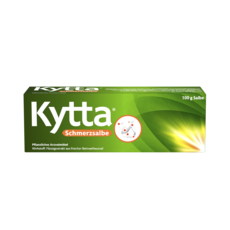 Bezeichnung: Kytta® Schmerzsalbe. Wirkstoff: Beinwellwurzel-Fluidextrakt. Zusammensetzung: 100 g Creme enthalten 35,0 g Beinwellwurzel, Fluidextrakt (1:2) mit Ethanol 60 Vol.-%. SonstigeBestandteile: 2-Phenoxyethanol-[butyl, ethyl, methyl, (2-methylpropyl), propyl] (4-hydroxybenzoat), Natriumhydroxid, PPG-1-PEG-9 Lauryl Glycol Ether, Cetylstearylalkohol, Glycerolmonostearat, Natriumdodecylsulfat, Erdnussöl, gereinigtes Wasser, Lavendelöl (enthält Limonen, Linalool), Fichtennadelöl (enthält Limonen), weitere Duftstoffe als Bestandteile des Parfümöl Spezial PH (enthält u. a. Benzylalkohol, Benzylbenzoat, Citral, Cumarin, Eugenol, Geraniol, Farnesol, Citronellol, Hydroxycitronellal, Limonen und Linalool). Anwendungsgebiete: Erwachsene: Zur äußerlichen Behandlung von Schmerzen und Schwellungen bei Kniegelenksarthrose degenerativen Ursprungs; akuten Myalgien im Bereich des Rückens; Verstauchungen, Prellungen und Zerrungen nach Sport- und Unfallverletzungen. Kinder ab 8 Jahren und Jugendliche: Zur äußerlichen Behandlung von Verstauchungen, Prellungen und Zerrungen nach Sport- und Unfallverletzungen. Gegenanzeigen: Überempfindlichkeit gegenüber einem der Inhaltsstoffe. Nicht auf geschädigter Haut, offenen Wunden, Schleimhäuten, Augen. Kinder unter 8 Jahren. Nebenwirkungen: Häufigkeit nicht bekannt: Erkrankungen der Haut und des Unterhautzellgewebes: lokale Hautreaktionen wie z. B. Kontaktdermatitis, Ekzeme, Schmerzempfindungen und Brennen auf der Haut, Juckreiz, Rötungen sowie Hautausschläge (z. B. in Form von Bläschen); Erkrankungen des Immunsystems: lokale Überempfindlichkeitsreaktionen am Applikationsort,systemische Überempfindlichkeitsreaktionen in Form von Urticaria, sowie Angioödemen, Überempfindlichkeitsreaktionen des Magen-Darm-Traktes (z. B. Übelkeit, Bauchschmerzen), der Augen (z. B. allergische Konjunktivitis), der Atemwege (z. B. allergische Rhinitis, erschwerte Atmung und Spasmen) oder des Herz-Kreislaufsystems (z. B. Blutdruckabfall, Herzrasen). Allergische Reaktionen durch folgende Inhaltsstoffe: Butyl-, Ethyl-, Methyl-, 2-Methylpropyl- und Propyl- 4-hydroxybenzoat (Parabene), Erdnussöl, Parfümöl Spezial PH, Benzylalkohol. Brennendes Gefühl bei geschädigter Haut durch Alkohol (Ethanol). Warnhinweis: Enthält 77 mg Alkohol (Ethanol) pro 1 g Creme. Enthält Erdnussöl, Butyl-, Ethyl-, Methyl-, 2-Methylpropyl- und Propyl- 4-hydroxybenzoat (Parabene), Cetylstearylalkohol, Natriumdodecylsulfat, Duftstoff (Parfümöl) mit Benzylalkohol, Benzylbenzoat, Citral, Cumarin, Eugenol, Geraniol, Farnesol, Citronellol, Hydroxycitronellal, Limonen und Linalool. Pharmazeutischer Unternehmer: P&G Health Germany GmbH, Sulzbacher Strasse 40, 65824 Schwalbach am Taunus. Stand: September 2023