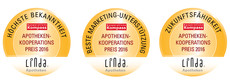 1Platz 1 "Beste Apothekenkooperation", u.a. Kategorie überregionale, GH-orientierte Kooperationen, Kooperations-Award PharmaRundschau 2012, 2013, 2014;
