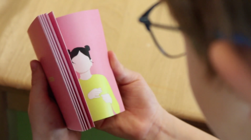 Das junge Unternehmen talking hands hat sich dieser Aufgabe angenommen. Bereits in der bekannten VOX-Show „Die Höhle der Löwen“ stellten die beiden Gründerinnen Maria Möller und Laura Mohn ihre Idee vor: kleine, kindgerechte Daumenkinos, die jeweils einen Ausdruck, Satz oder Begriff als Gebärde zeigen. Die Investor:innen der TV-Show waren von der Idee beeindruckt und kauften jeweils mehrere tausend Daumenkinos ein, um sie an Kitas zu verschenken. talking hands arbeitet gemeinsam mit Andreas Costrau, Muttersprachler und Dozent für Gebärdensprache.