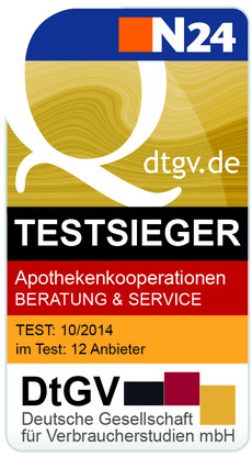3Testsieger "Apothekenkooperationen Beratung & Service" 9-2012, DtGV (Deutsche Gesellschaft für Verbraucherstudien mbH) und N24;