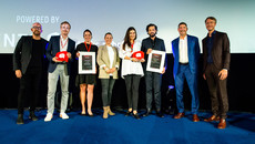 »Bei der Preisverleihung des VISION.A-Awards in Berlin nahmen Vanessa Tscholl (3. v. l.) und Dr. Benjamin Lieske (2. v. l.) für LINDA den Preis für die zweitbeste Kampagne entgegen.« Quelle: VISION.A/Andreas Domma