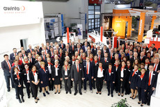 Das über 100-köpfige Team der awinta präsentierte sich gemeinsam mit den neuen regionalen Geschäftsleitern sowie dem neuen Geschäftsleiter Vertrieb für ganz Deutschland am zweistöckigen Messestand – einem der größten Stände auf der Expopharm.