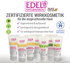 Das Pflegeprogramm für onkologische Kosmetik des Heidelberger Kosmetikherstellers Edel Naturwaren basiert auf sanften, naturmedizinischen Wirkstoffen, die in erster Linie die gereizte Haut beruhigen und die anfällige Hautbarriere vor schädigenden Einflüssen schützen. Der hauteigene Schutz kann so langsam – Schritt für Schritt – wieder hergestellt werden. Und dies ohne den Zusatz belastender oder überflüssiger Zusätze.