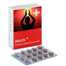 BRAIJN enthält das Plus an BRAHMI (240 mg), GOJI-Extrakt (240 mg), Rote Beete-Extrakt (232 mg) und GINKGO BILOBA (40 mg). Darüber hinaus enthält die empfohlene Tagesdosierung von 2 Kapseln den Tagesbedarf an Zink und wesentlichen B-Vitaminen. Power für Herz, Hirn und Potenz.