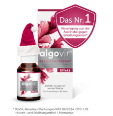 algovir wirkt rein physikalisch und verursacht weder systemische Nebenwirkungen noch Gewöhnungseffekte. Es kann zusammen mit anderen Medikamenten angewendet werden und ist bei Vorerkrankungen, für Schwangere, Stillende und Kinder ab einem Jahr geeignet. Auf eine gesunde Festsaison!