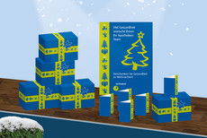 1 Aktionsaufsteller, 5 weihnachtliche Geschenkboxen und 5 Weihnachtskarten mit Umschlag.