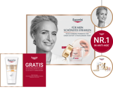 Die bewährte Hyaluron-Filler + Elasticity Serie von Eucerin ist speziell auf die Bedürfnisse älter werdender Haut ausgerichtet. Kurz- und langkettige Hyaluronsäure polstert selbst tiefe Falten auf und spendet intensive Feuchtigkeit. Durch die Formel mit patentiertem Thiamidol® werden Altersflecken effektiv gemildert und ihre Neubildung gehemmt. Der innovative Kollagen-Elastin-Komplex, eine leistungsstarke Kombination aus Arctiin und Kreatin, regt die hauteigene Kollagenproduktion an und verleiht der Haut spürbare Elastizität. Zusätzlich sorgt der hochwirksame Schutz mit LSF 30 und UVA-Filter effektiv der Entstehung sonnenbedingter Hautschäden vor.