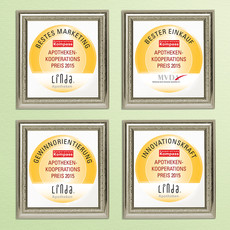 1Platz 1 "Beste Apothekenkooperation", u.a. Kategorie überregionale, GH-orientierte Kooperationen, Kooperations-Award PharmaRundschau 2012, 2013, 2014; 2Markenerfolgskontrolle bei Verbrauchern 2012; iCONSULT Forschung & Consulting GmbH;