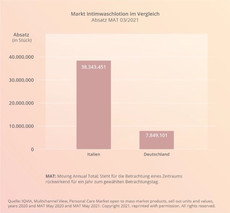 Der Absatz der Intimpflegeprodukte in Italien ist fünfmal höher als in Deutschland. Grafik in größerer Auflösung siehe PDF am Ende der Branchennews.