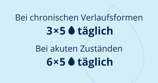 Restaxil® Tropfen können je nach Verlaufsform der Schmerzen individuell dosiert werden. Wir empfehlen bei chronischen Verlaufsformen die tägliche Einnahme von 3x je 5 Tropfen. Bei akuten Zuständen kann die Dosierung auf bis zu 6x täglich je 5 Tropfen erhöht werden.