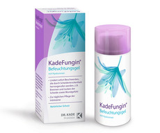 Mit dem klaren, geruchlosen und ergiebigen KadeFungin® Befeuchtungsgel werden trockenheitsbedingte Intimbeschwerden sofort gelindert. Der Wirkstoff Hyaluronan spendet wohltuende Feuchtigkeit und sorgt dafür, dass eine größere Menge Wasser im Intimbereich gebunden wird. Außerdem bietet er einen natürlichen Schutz.