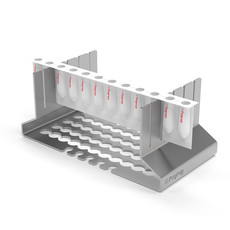 Und um bereits die Herstellung zu erleichtern, bieten wir Ihnen mit der neuen 3-in-1 Halterung eine praktische Lösung. Hiermit können Sie bis zu 5 Suppositorienstreifen gleichzeitig befüllen. Auf den Kopf gedreht dient Ihnen das Gestell als Halterung von bis zu 10 Einmalampullen.