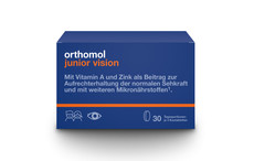 Das neue Orthomol junior Vision trägt mit Vitamin A, Zink und sekundären Pflanzenstoffen zur Aufrechterhaltung der normalen Sehkraft bei.
