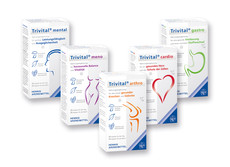 Die Trivital®-Produktfamilie umfasst 5 verschiedene Produkte für eine zielgerichtete Nährstoffversorgung: Trivital® arthro für gesunde Knochen und Gelenke, Trivital® cardio für ein gesundes Herz und den Schutz der Zellen, Trivital® gastro für eine gesunde Verdauung und einen normalen Stoffwechsel, Trivital® meno für hormonelle Balance und Vitalität sowie Trivital® mental für geistige Leistungsfähigkeit und Ausgeglichenheit. Die Kapseln sind lactose- und glutenfrei.