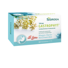 Sidroga GastroPhyt® Wirkstoff: Schafgarbenkraut-Trockenextrakt. Zusammensetzung: 1 Filmtablette enthält: 250 mg Trockenextrakt aus Schafgarbenkraut (Achillea millefolium L., herba) (5-10:1); Auszugsmittel: Wasser. Sonstige Bestandteile: Maltodextrin, mikrokristalline Cellulose, Croscarmellose-Natrium, Cellulosepulver, hochdisperses Siliciumdioxid, Magnesiumstearat (Ph. Eur.) (pflanzlich), Hypromellose, Stearinsäure (Ph. Eur.) (pflanzlich), Macrogol 6000, Talkum, Titandioxid E171, Eisen(III)-oxid E172. Anwendungsgebiete: Traditionelles pflanzliches Arzneimittel zur symptomatischen Behandlung von leichten, krampfartigen Magen-Darm-Beschwerden, einschließlich Völlegefühl und Blähungen ausschließlich aufgrund langjähriger Anwendung. Für Erwachsene und Jugendliche ab 12 Jahren. Gegenanzeigen: Überempfindlichkeit gegen den Wirkstoff, andere Korbblütler oder einen sonstigen Bestandteil. Nebenwirkungen: Überempfindlichkeitsreaktionen der Haut.