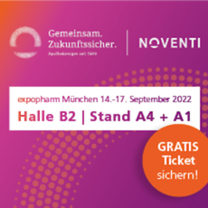 Erfahren Sie unter expopharm.noventi.de mehr über das Messeprogramm von NOVENTI und vereinbaren Sie Ihren Gesprächstermin am Stand A4 und A1 in Halle B2.