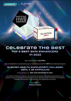 Gütersloh - Bei den renommierten Watsons HWB Awards wurde ELASTEN® als einer der "TOP 5 BEST SKIN ENHANCER" des Jahres 2022 ausgezeichnet. Die internationale Auszeichnung würdigt herausragende Produkte und Marken im Bereich Gesundheit, Wellness und Schönheit. Die Kunden hatten die Möglichkeit, für ihre Favoriten abzustimmen und entschieden sich für ELASTEN® als eines der besten Hautpflegeprodukte auf dem Markt.