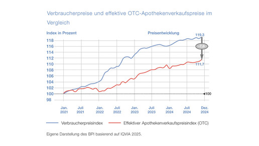 Berlin - Die „OTC-Daten 2025“ des Bundesverbands der Pharmazeutischen Industrie e.V. (BPI) zeigen: Der Markt für der Selbstmedikation (OTC) wächst weiter. Jede zweite Arzneimittelpackung, die in Apotheken verkauft wird, ist nicht verschreibungspflichtig.