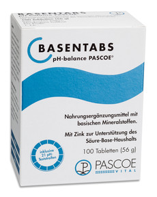 BASENTABS pH-balance PASCOE® sind ein mineralisches Nahrungsergänzungsmittel mit Zink. Die ausgewogene Basenmischung aus Bicarbonaten und Carbonaten enthält Calcium, Magnesium und Natrium und wirkt dadurch unterstützend bei erhöhter sportlicher Aktivität. Die kleinen geschmacksneutralen Tabletten sind zucker-, lactose- und glutenfrei, frei von Aroma-, Farb- und Konservierungsstoffen.