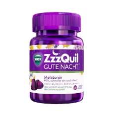 2ZzzQuil Gute Nacht ist ein Nahrungsergänzungsmittel mit Melatonin. Melatonin trägt dazu bei, die Einschlafzeit zu verkürzen.