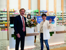 managementsystem in Deutschland. Mit der 4000. IXOS Installation in der MUC Apotheke in München zeigt das Unternehmen, dass die meisten Apotheken in Deutschland auf IXOS vertrauen. „Wir freuen uns mit der Gründerin Estefania Madiedo Huergo, die eine neue Apotheke mit IXOS eröffnete, über die 4000. Installation“, erklärt Dr. Graessner, Geschäftsführender Gesellschafter der PHARMATECHNIK GmbH & Co. KG. Zur Ehrung überreichte er ihr einen Blumenstrauß sowie ein Zertifikat und sicherte ihr Unterstützung durch PHARMATECHNIK zu.