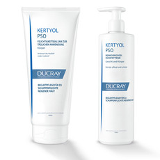 Pflegeprodukte zur täglichen Hautpflege bei Psoriasis müssen hohe Anforderungen erfüllen. Sie sollen hartnäckige trockene Plaques entfernen und ihrer Entstehung vorbeugen, den Juckreiz und die Entzündung mindern und die Zahl der akuten Schübe reduzieren. KERTYOL P.S.O. von DUCRAY enthält die Aktivstoffe Glykolsäure und Salicylsäure, die dank ihrer keratolytischen Eigenschaften auch hartnäckige Plaques lösen. Ichtyol hemmt die Zellerneuerung, Vederine® fördert die Zelldifferenzierung und beugt so der Entstehung neuer Plaques vor. Starker Juckreiz wird durch Polidocanol reduziert, Celastrol® hemmt die Entzündung.