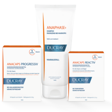 DUCRAY ANACPAS Reactiv bei temporärem Haarausfall. Die enthaltenen schwefelhaltigen Aminosäuren Cystin und Methionin bilden die Grundlage für Haare und Nägel. Unterstützt werden sie durch Biotin und die Vitamine E, Niacin und B6, die den Zellstoffwechsel der Haarwurzel fördern. Nach und nach werden so die Haare gestärkt und ihre Widerstandskraft erhöht. Die tägliche Anwendung unterstützt den Erhalt und Aufbau der Haare und beugt oxidativem Stress vor.