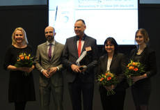 Ausgezeichnet! Das Unternehmen Pierre Fabre erhielt für die digitale Trainingwelt Dermingo den eLearning Award „Beste Lernplattform“ 2019. Von links: Astrid Jacob, Leiterin der Trainingsabteilung Pierre Fabre, Thilo Kölzer, Vorstand der Antwerpes AG, Frank Siepmann, Herausgeber des eLearning Journals, Bea Brunner, Trainingsabteilung Pierre Fabre, und Caterina Renner, Junior Account Manager Antwerpes AG.