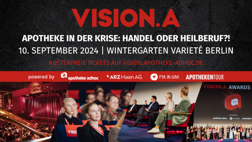 Berlin - APOTHEKE IN DER KRISE: HANDEL ODER HEILBERUF?! Die Zukunft der Apotheken wird kontrovers diskutiert, die Apothekenreform von Karl Lauterbach wird öffentlich zerrissen, schafft es nicht ins Kabinett. Bei der VISION.A Zukunftskonferenz kommen Experten zu Wort: Bundespolitiker, Experten aus BMG, Apotheke und Pharma sprechen zu 400 Gästen und im Livestream am 10.9.2024 in Berlin.