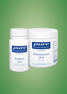 Bereiten Sie Ihren Kunden mit den hochwertigen Produkten von Pure Encapsulations® einen unbeschwerten Jahreswechsel. Brokkoli plus und Basenpulver plus sind die ideale Kombination für die Beratung zum Neustart. Brokkoli plus enthält Brokkolisprossen, Resveratrol sowie reduziertes Glutathion – ideal bioverfügbar, maximal verträglich und frei von unnötigen Zusatz- und Konservierungsstoffen. Das in Brokkoli enthaltene Sulforaphan kann das Nrf2-Protein in den Körperzellen aktivieren und so den Körper unterstützen. Basenpulver plusist reich an wertvollen Mineralstoffen, wie Calcium, Kalium und Magnesium. Magnesium unterstützt das Elektrolytgleichgewicht und das Plus an Zink ist ein wichtiger Faktor für einen stabilen Säure-Basen-Stoffwechsel. Das Pulver wird in Wasser aufgelöst und 30 Minuten vor oder zumindest eine Stunde nach dem Essen getrunken.