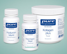 Wenn Apothekenkunden neben gepflegter Haut auch gesunde Haare und Nägel unterstützen möchten, eignet sich zusätzlich Haut-Haare-Nägel von Pure Encapsulations®. Die Nährstoff-Formel vereint ausgewählte Vitamine und Spurenelemente mit Coenzym Q10 und den Auszügen aus grünem Tee und Bambus. Ausgewählte, in der Rezeptur enthaltene Mikronährstoffe wie etwa Zink tragen zum Erhalt von straffer Haut, festen Nägeln sowie glänzendem Haar bei. Und sie schützen die Zellen vor oxidativem Stress. Haut-Haare-Nägel eignet sich für eine langfristige Anwendung und lässt sich gut mit Kollagen plus oder Hyaluronsäure kombinieren.