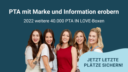 Deshalb heißt es schnell sein: Sichern Sie sich jetzt Ihre Platzierung für die kommenden Boxen im Oktober und November (jeweils 20.000) inklusive Marktforschung, Schulungsvideo und umfangreichen Marketingkit und setzen nicht nur einen, sondern bis zu zehn (!) Touchpoints im Zuhause der PTA und ihrem Gedächtnis für die nächste Beratung. Das Sales-Team freut sich auf Ihre Nachricht an sales(@)pta-in-love.de.