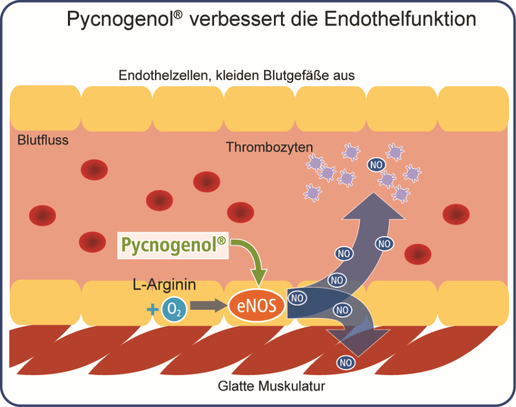Pycnogenol® hat sich in zahlreichen klinischen Studien als vorteilhaft für die Mikrozirkulation und die endotheliale Funktion erwiesen. Neben der Förderung der NO-Synthese trägt es zur Hemmung der Thrombozytenaggregation bei und zeigt starke entzündungshemmende Effekte.