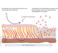 Umweltgifte belasten die Haut in dem die winzigen Schadstoff-Partikel bis in die tiefen Hautschichten vordringen © ELASTEN-Forschung