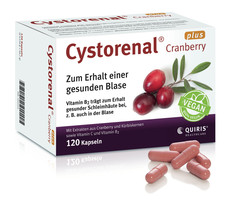 Die natürliche Cranberry-Kürbis-Kombination zeichnet sich durch eine sehr gute Verträglichkeit aus. Sie kann sogar während der Schwangerschaft und Stillzeit angewendet werden. Eingesetzt wird "Cystorenal Cranberry plus" zum Erhalt einer gesunden Blase sowie begleitend bei Harnwegsinfekten. Vitamin B2, auch Riboflavin genannt, stärkt die Schleimhäute und somit auch eine gesunde Blase.