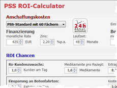 Wie und in welcher Höhe sich das auf die Amortisation der dafür erforderlichen Investition auswirkt, kann apothekenspezifisch schnell und umfassend mit Hilfe des ROI-Kalkulators der Firma PSS – Pharma Services Systeme brechnet werden.