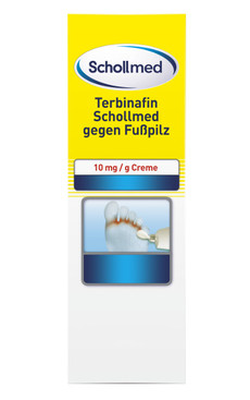 Die im ersten Schritt zu verwendende Schollmed Terbinafin Creme sorgt in nur wenigen Tagen für Symptomlinderung. Durch das 1-2mal tägliche Eincremen der betroffenen Stellen reichert sich der Wirkstoff Terbinafin in der Haut an und entfaltet seine starke fungizide Wirkung, die ein weiteres Pilzwachstum hemmt. Bei empfohlener Anwendungsdauer von nur sieben Tagen, wird so der Fußpilz effektiv behandelt und das Risiko eines frühzeitigen Therapieabbruchs minimiert.